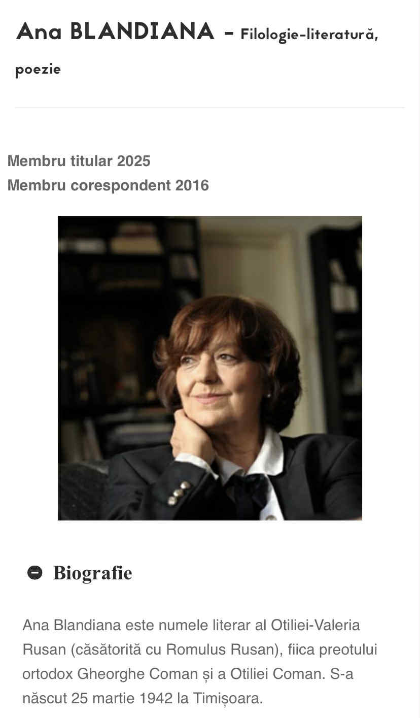 Ana BLANDIANA, autoarea noastră, este membru titular al Academiei Române