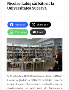 Ecouri de la lansarea volumului „Nicolae Labiș. Opere” la Suceava 27.10.2025